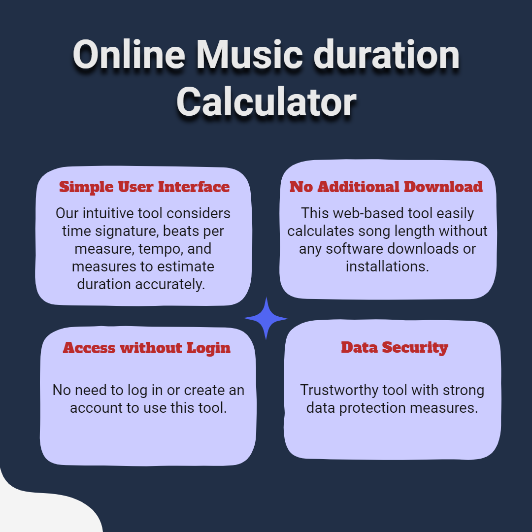 Calculate the length of any song effortlessly with our song length calculator! No need to log in or create an account, just enter the song's details and get instant results. Perfect for musicians, DJs, and music enthusiasts. Try it now!